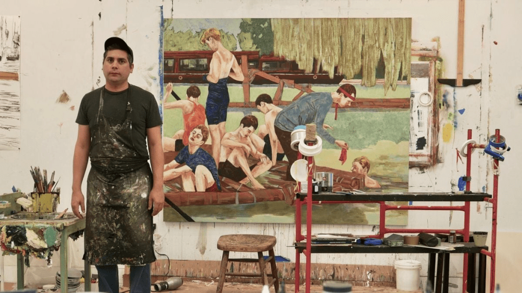 Take Hernan Bas. His paintings are not built from direct observation alone, but from a carefully constructed atmosphere. He has spoken about influences as varied as the decadent prose of Oscar Wilde and the theatrical, almost surreal energy of 1980s music videos. His work exists at the intersection of these references—a mood shaped as much by literature and culture as by visual experience.